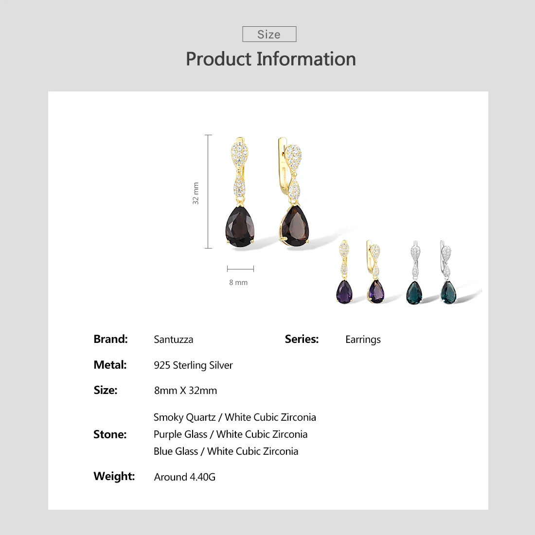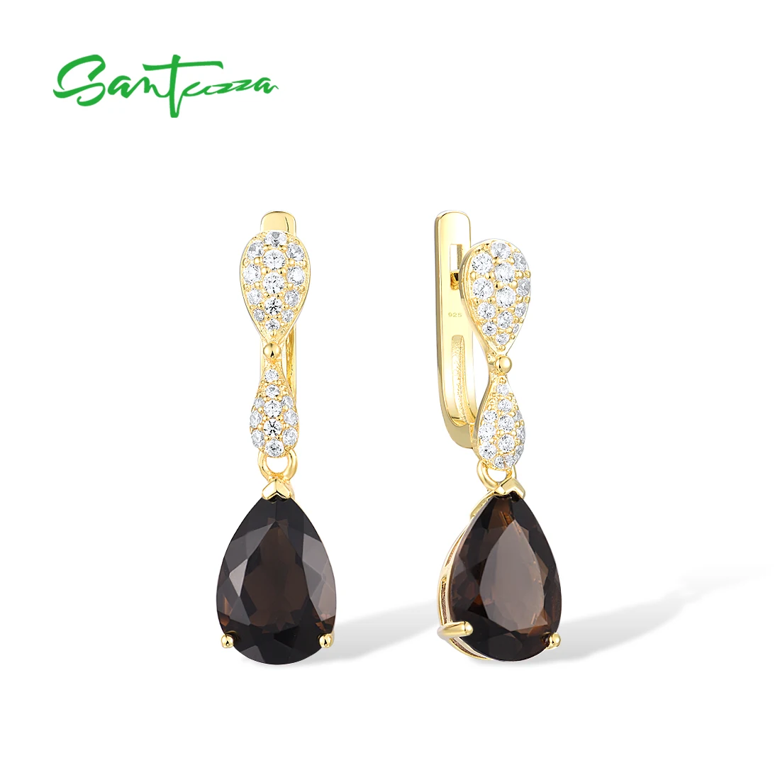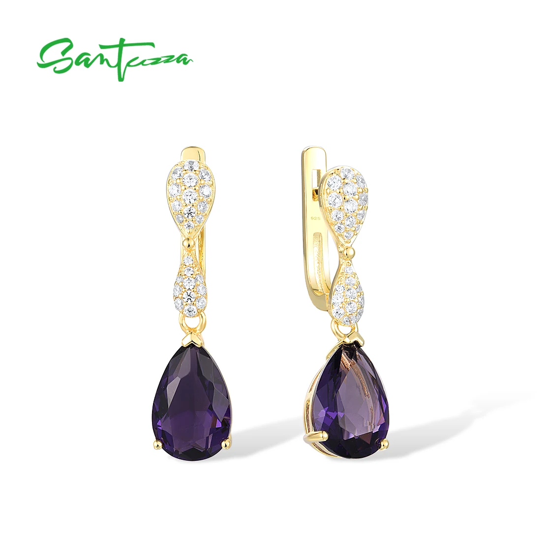 Женские серебряные сережки-подвески SANTUZZA, из серебра 925 пробы с разноцветными камнями и белым кубическим цирконием, модные ювелирные украшения