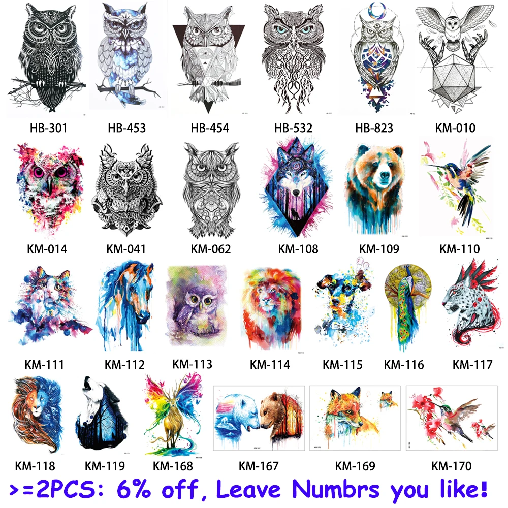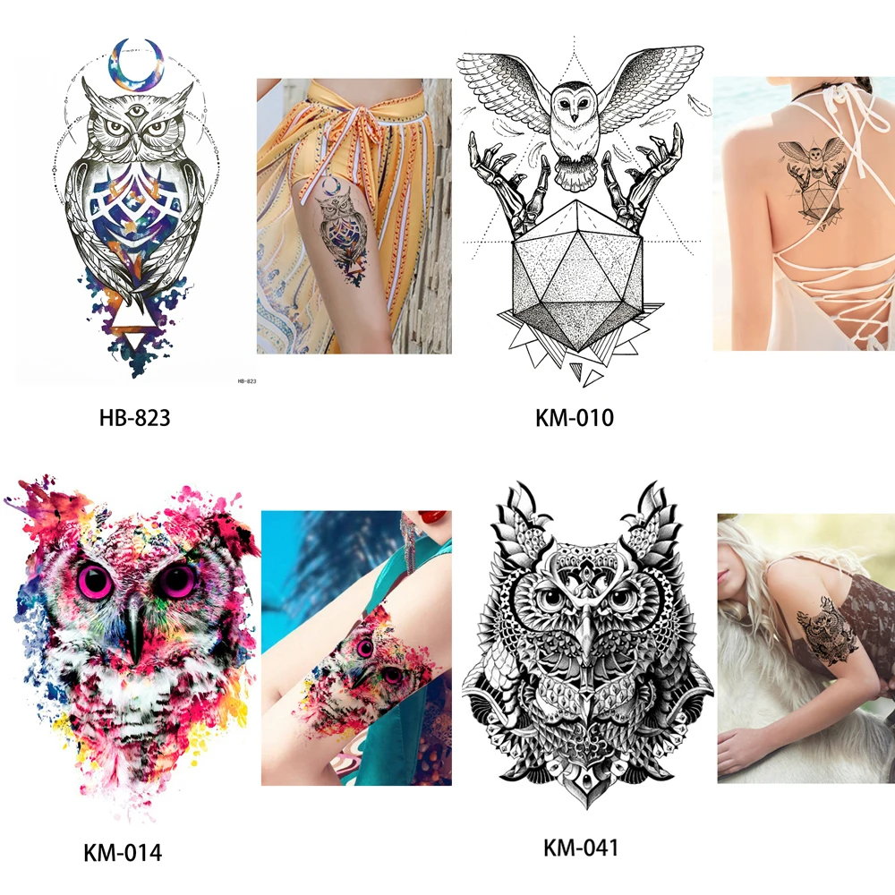1 лист красочных рисунков, временные татуировки для женщин и мужчин, боди-арт, наклейки с изображением аниме совы, узор KM-014, водостойкие наклейки, переводные тату, водные наклейки