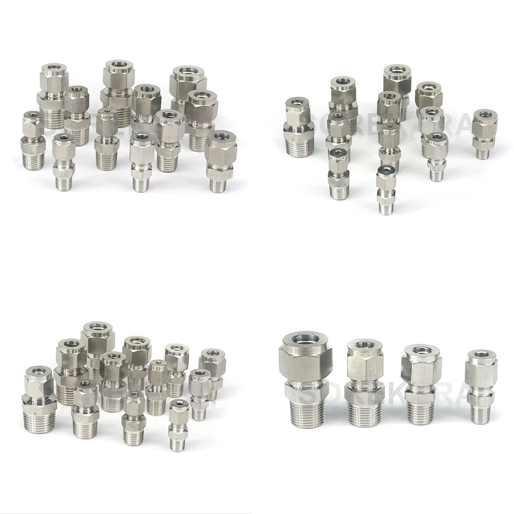 Компрессионный фитинг BSPT с двойным наконечником, 18 дюйма, 14 дюйма, 38 дюйма, 12 дюйма, наружная труба 34681012141618 мм из нержавеющей стали 304