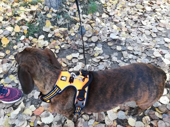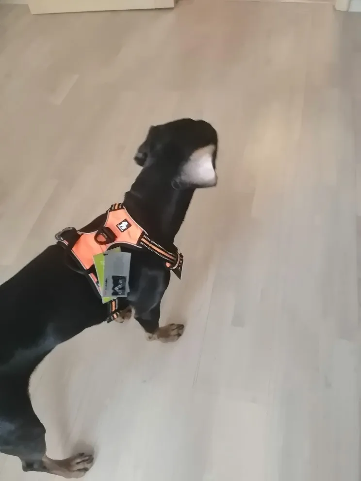 Приятный материал. Очень прочный. Лучше, чем дорогие жгуты в магазинах домашних животных. Я бы порекомендовал К сожалению, у моего миниатюрного шнауцера большая (длинная) грудь, поэтому он не может его носить. Но мы получили другой тип от настоящей любви, которая подходит ему❤② Отлично подходит для собак с маленькой (плоской) грудью, как Йоркширский терьер :)