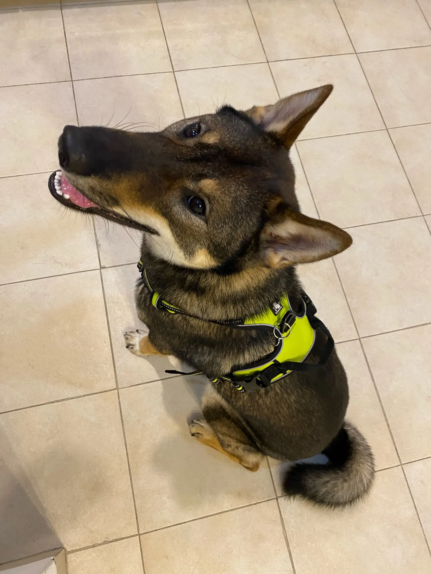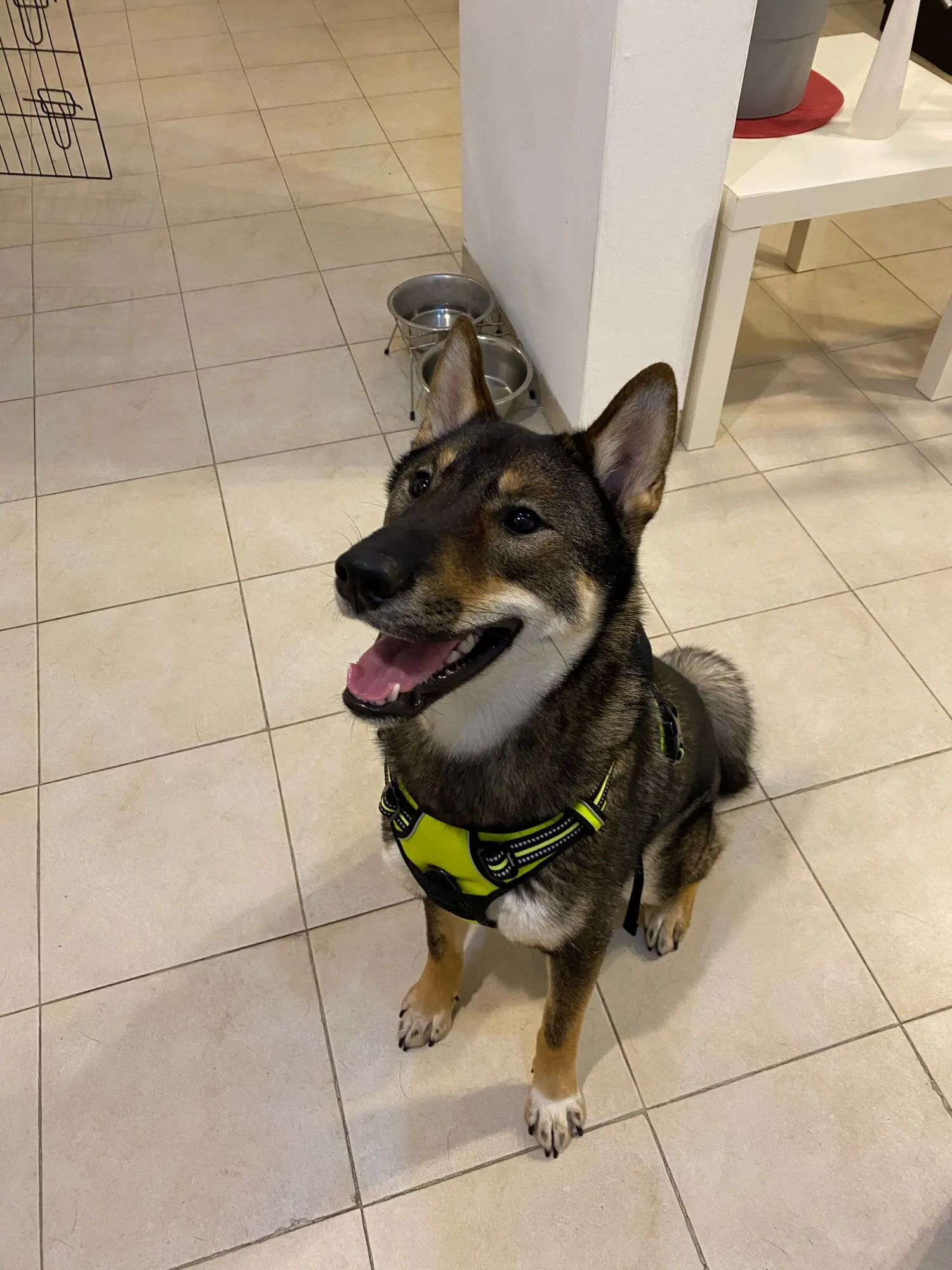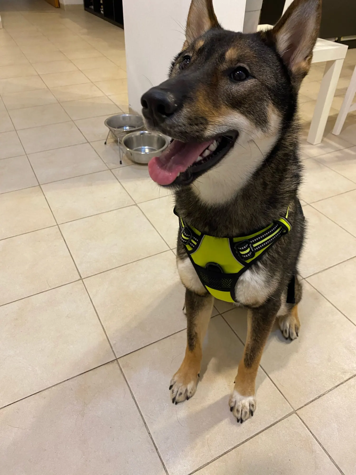 очень крутая и качественная шлейка , доставка до дома молниеносная ) всем советую !!! на сиба ину 10,5 кг подошёл М