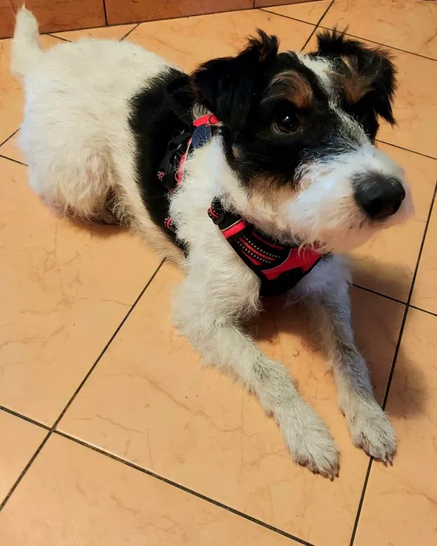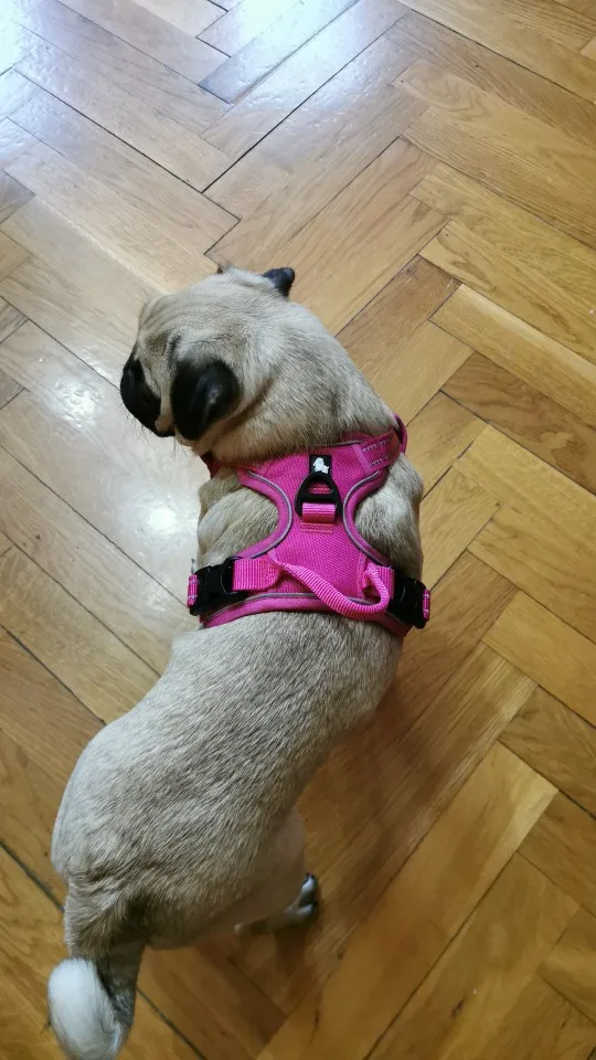Подтяжки супер, купил 25,02. Доставка в Великобританию из Бельгии 01,03. Размер S ciut для свободного кроя в области шеи после максимального skróceniu для 4 месячных foksteriera. Но я думаю, что когда собачка доросни будет в порядке.
