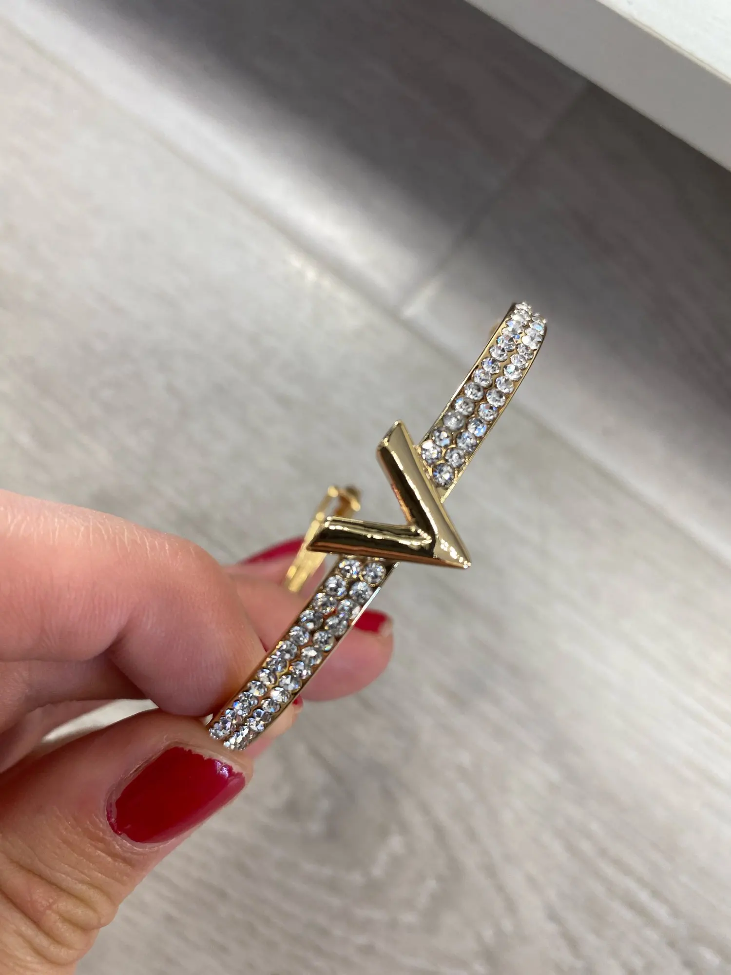 Женский Браслет-манжета с кристаллами, золотистый и серебристый браслет с геометрическим цирконием