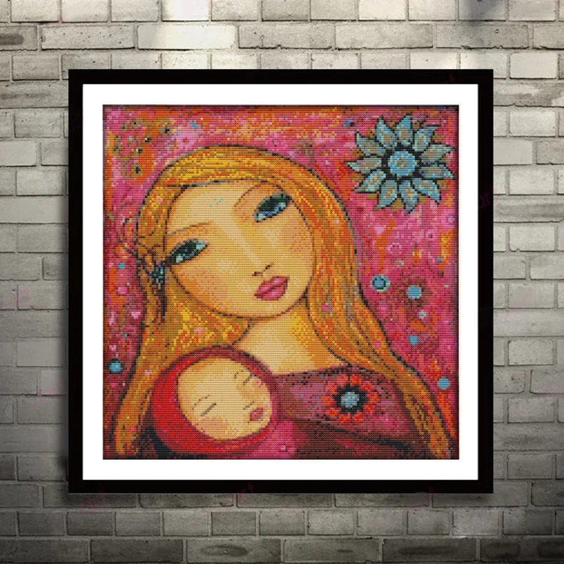 Акварельная картина для матери и дочери, холст DMC, наборы для вышивки крестиком, Набор для вышивки крестиком с принтом, вышивка