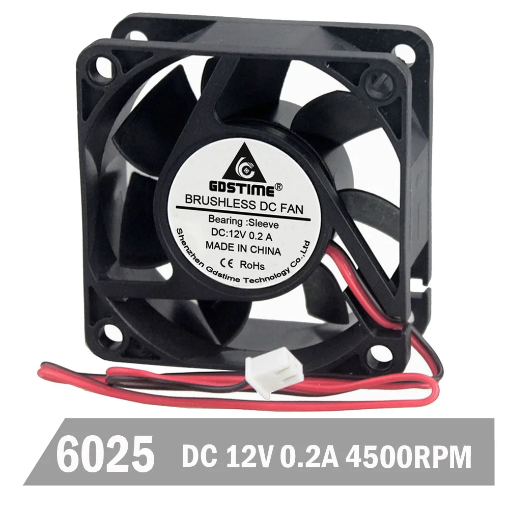 Вентилятор Gdstime, 12 В, 60 мм, 60x60x25 мм, 6 см, 6025, 2 контакт...