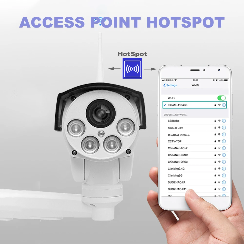 Поддержка подключения точки доступа (AP Wi-Fi), вы можете подключить камеру в режиме AP и просмотр в реальном времени/воспроизведение/управление панорамированием и наклоном даже без интернета
