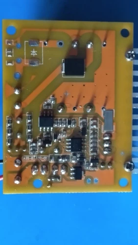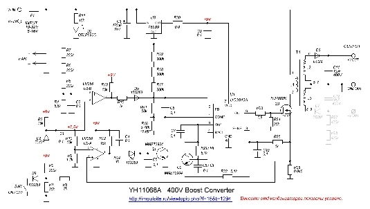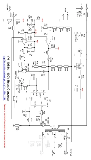 Доставка в Смоленскую область 16 дней. Преобразователь работает. Вместо резистора защиты впаяна металлическая полоска, буду менять её на нормальный резистор. Также надо переставить резистор (перемычку) на питание от источника 8-16 вольт. В стандартном варианте 10—32 вольта нельзя спускаться ниже 10 вольт, преобразователь начинает работать не стабильно, и люди пишут что взрывается конденсатор на выходе. Схема найдена в интернете, могут быть ошибки.