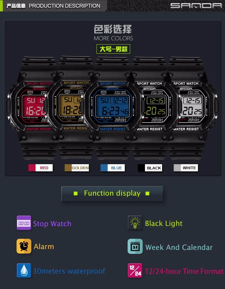Цифровые часы SANDA 329 мужские, водонепроницаемые, для дайвинга, светодиодные, спортивные, мужские часы, лучший бренд, военные, мужские часы