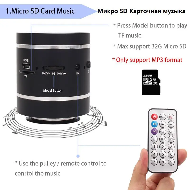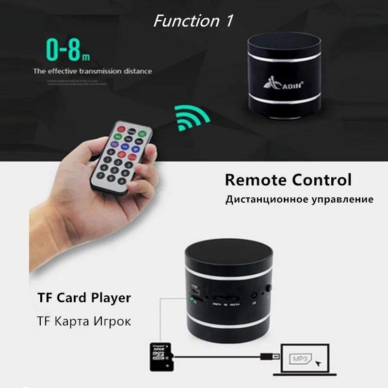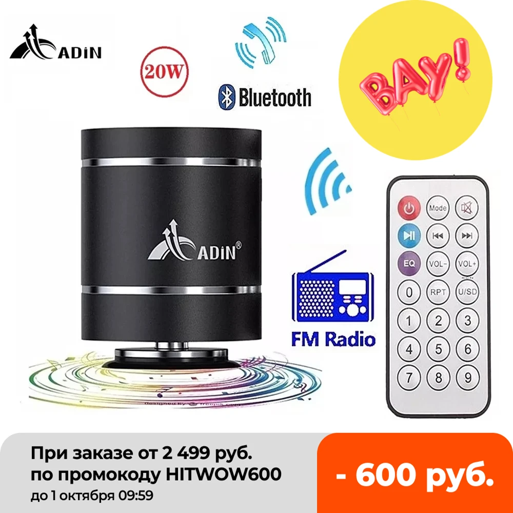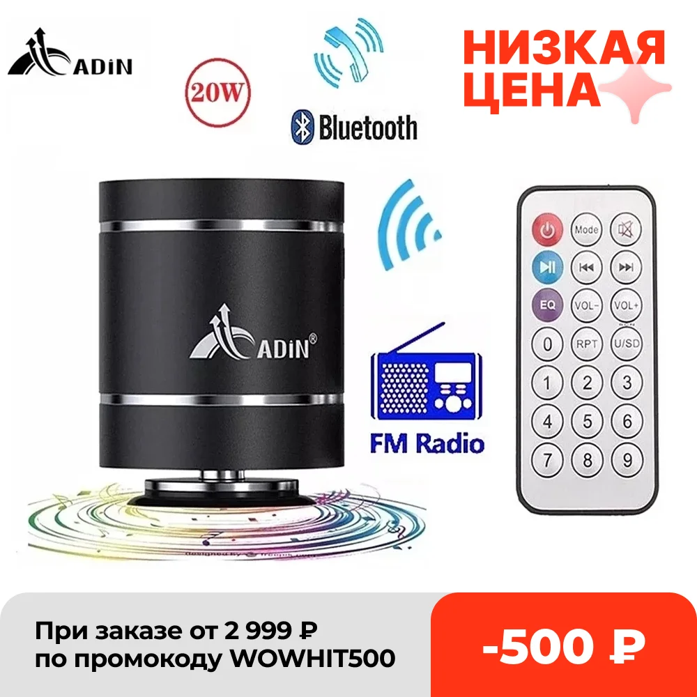 Портативный Bluetooth-динамик Adin s с пультом дистанционного управления с Fm-радио, мини-динамик вибрирующий динамик, беспроводной сабвуфер, басовый динамик для телефона