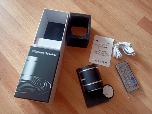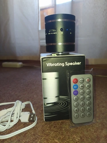 Пришло в небольшом коробке. В комплекте были: колонка, шнур питания и звука, запасная присоска для динамика и пульт дист. управления, но он к сожалению отказался работать хоть и была заряженая батарейка в комплекте, но это не серьезно. Колонка второй час работает на переизбыточной мощности благодаря доп. усилителю. Усиление на 160% идеальный звук и очень мощный басс. 200% колонка уже хрипит и качество звука падает. В таком режиме за 2 часа заряд упал всего на 30% Присоску на динамике стоит каждый раз после использования протирать влажной тряпкой или салфеткой, от пыли или прочего мусора плохой контакт и она просто открепляется от объекта. Во время тестовколонка была на деревянном полу и на полной мощности, полы жёстко трясло на мощных басах, но звук был качественный и без посторонних звуков. Если кто-то желает насолить соседям то она подойдет если у вас деревянная стена или пол, так как железобетон или кирпич плохо проводит колебания на полной мощности была лишь легкие вибрации.
