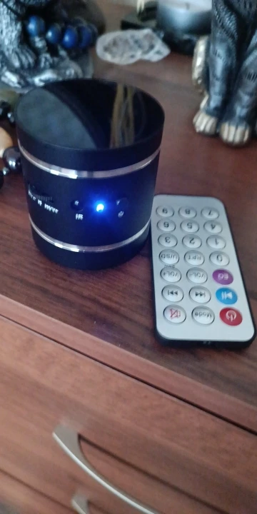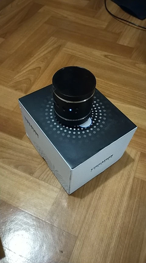 По беспроводной сразу связалась с телефоном ,игрушка хорошая ,звук на максимуме дребезжит.Понравилось звучание на окне,холодильнике и шкафу ,буду дальше эксперементировать.Колоночка вес имеет в прямом и переносном!!!