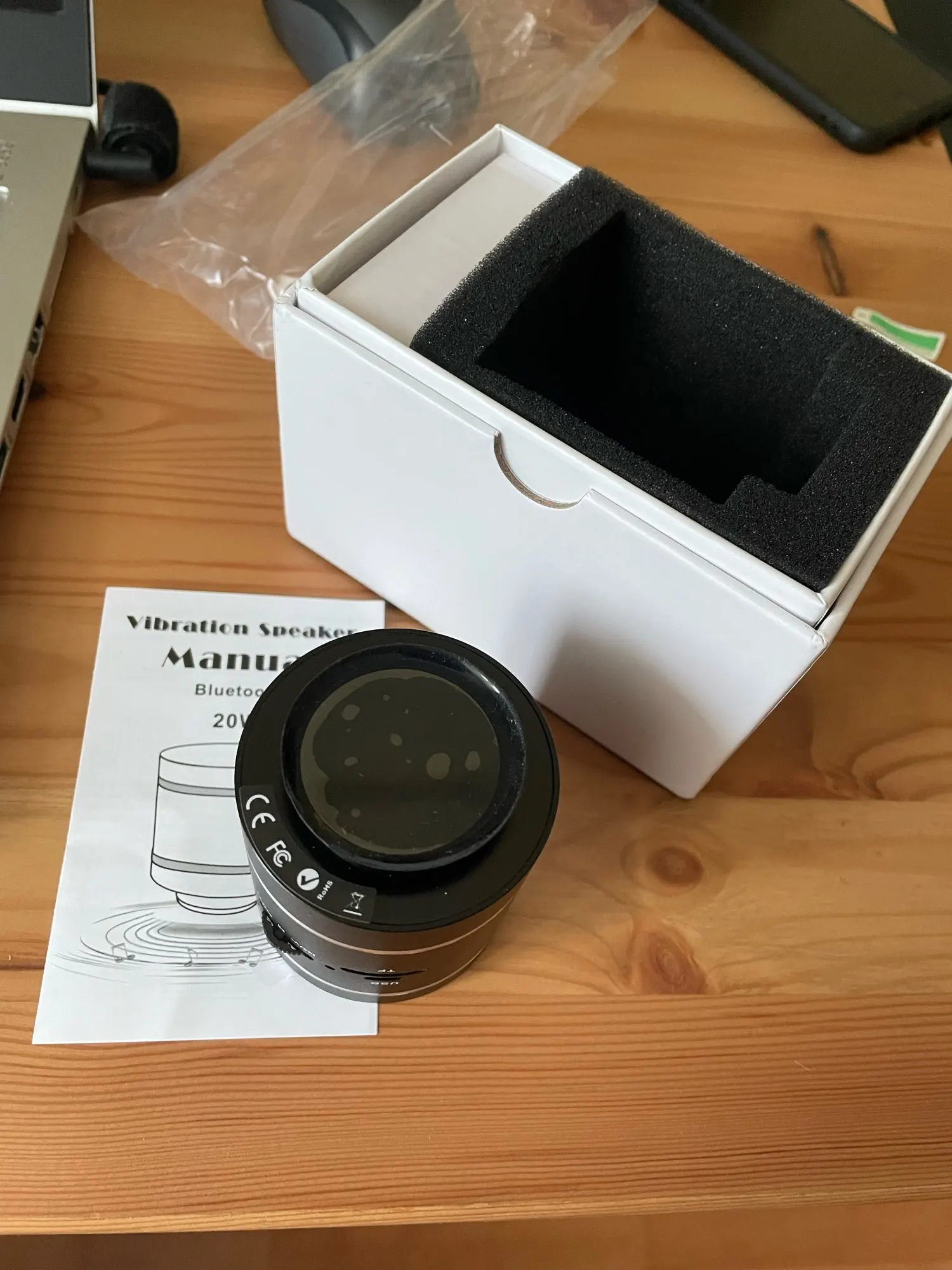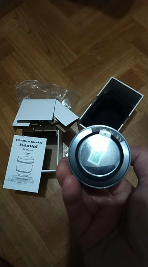 Доставка до Санкт-Петербурга за 16 дней. Пока только опробовал блютуз с телефона, долбит не плохо. На стеклянной поверхности звук громче всего. Естественно данный девайс предназначен для соседа с верху. Позже оставлю отзыв и общее впечатление о виброколоке.