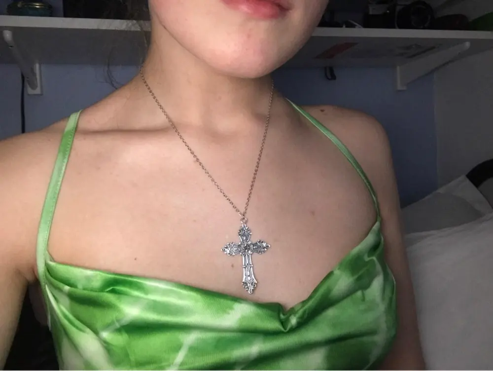 Красивое ожерелье с отличными деталями, не кажется, что оно быстро сломается. Узор только с одной стороны и цепочка хорошего качества, определенно рекомендую. Отлично подходит для качества и цены!
