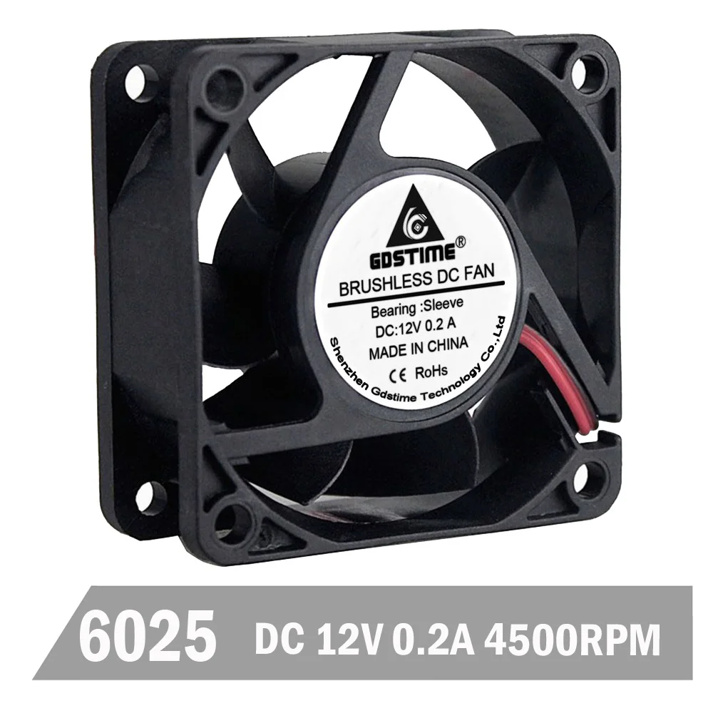 Вентилятор Gdstime, 12 В, 60 мм, 60x60x25 мм, 6 см, 6025, 2 контакта, охлаждающий вентилятор для ПК, ноутбука
