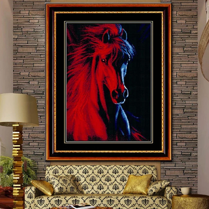Вышивка крестом QIANZEHUI, пейзаж восемь лошадей, наборы для вышивк...
