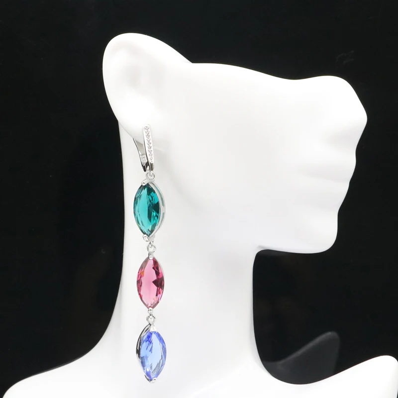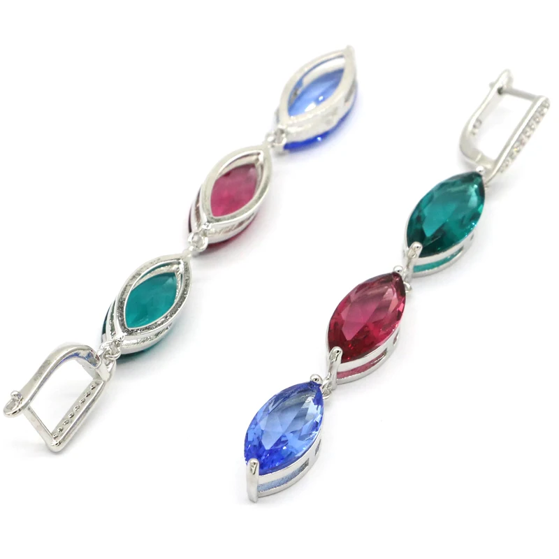 Серебряные серьги для сестры, многоцветные серьги из фиолетового танзанита цаворита, граната, аквамарина, турмалина, серебряные серьги 77x8 мм