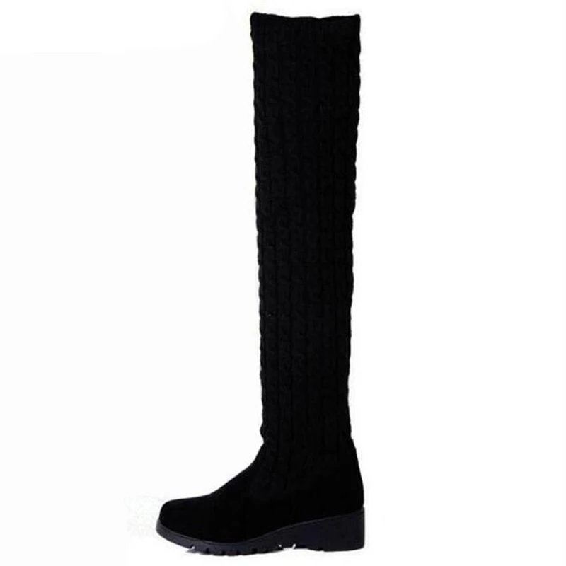2022 модные вязаные женские сапоги до колена, эластичные облегающие осенне-зимние теплые длинные сапоги до бедра, женская обувь, размер 40 WBS539