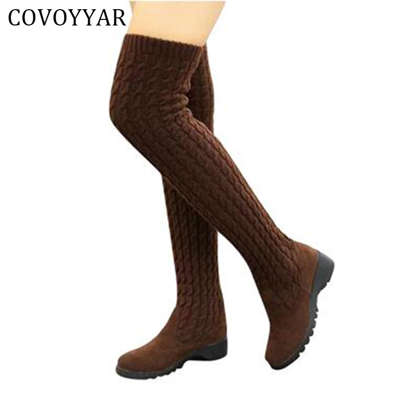COVOYYAR 2021 зимние модные женские сапоги плетеные выше колена выс...