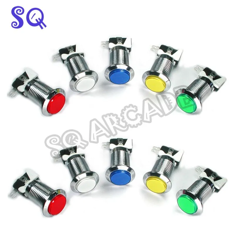 Бесплатная доставка 10 шт./лот хромированная подсветка аркадная Кнопка 12 В светодиодная аркадная кнопка Пуск с микропереключателем