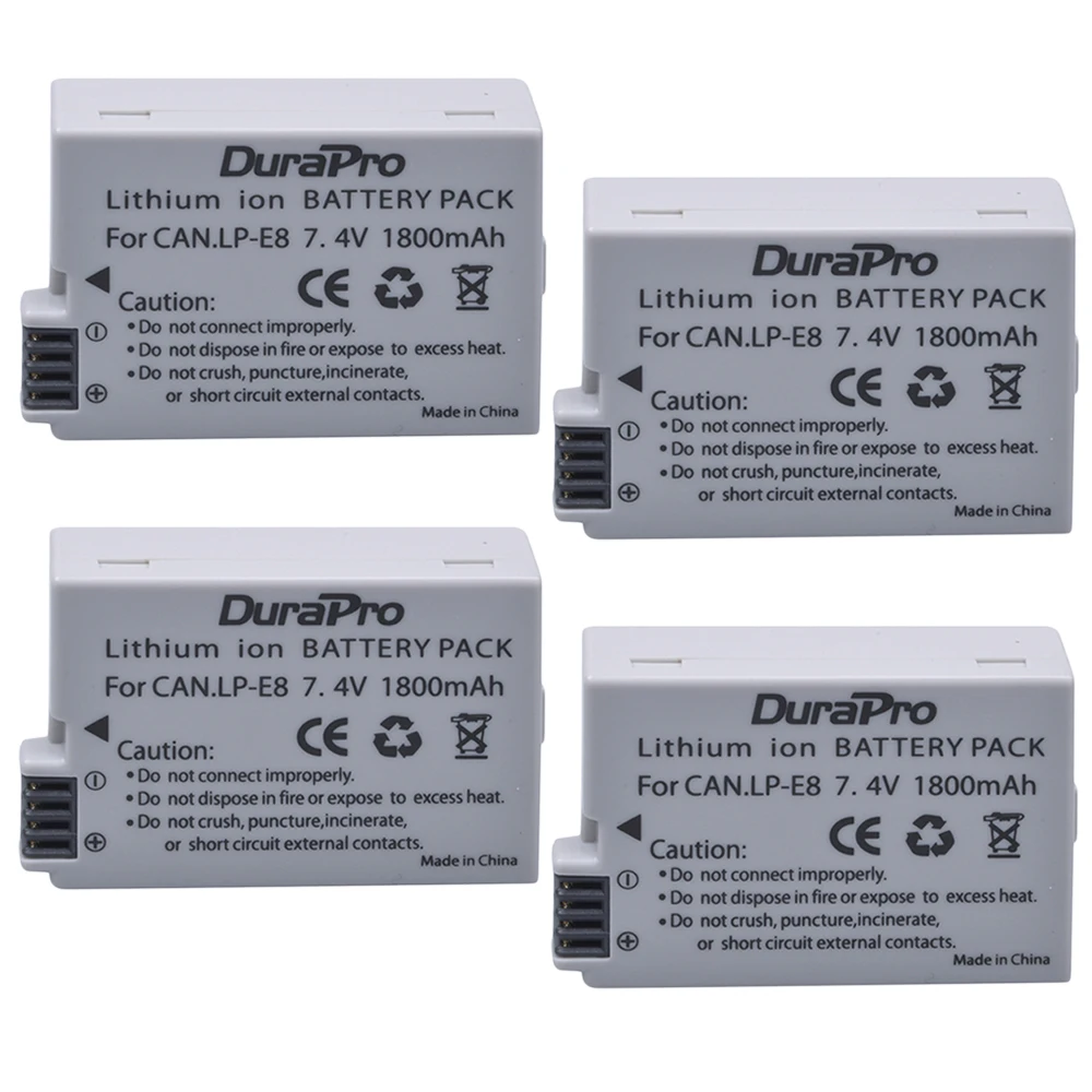 4 шт. x Аккумулятор DuraPro 1800 мАч LP-E8 LP E8 LPE8 для камеры Canon 550D 600D батарея высокого качества!