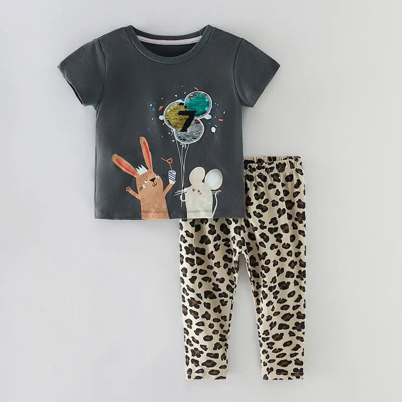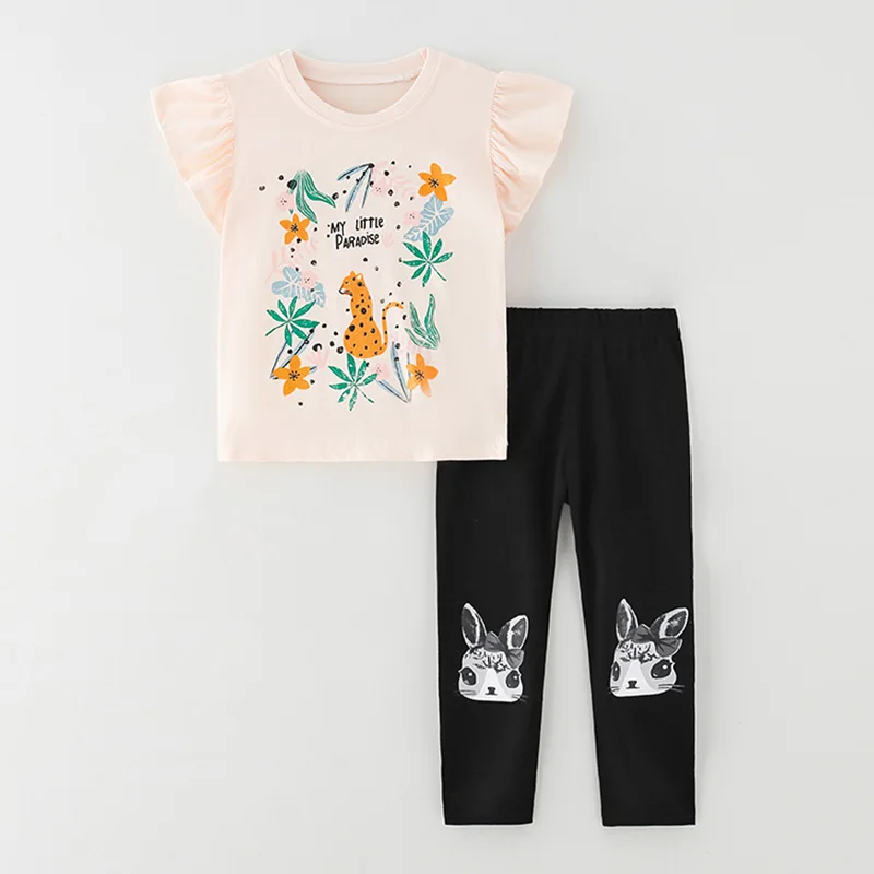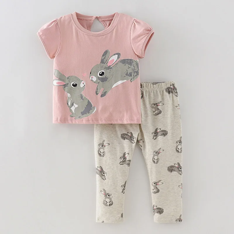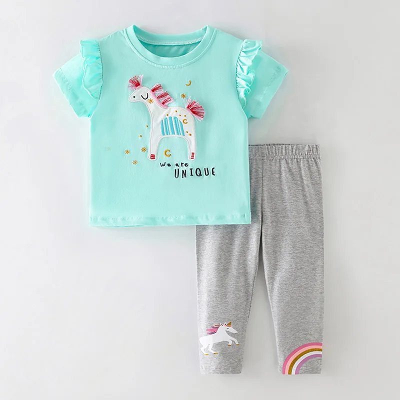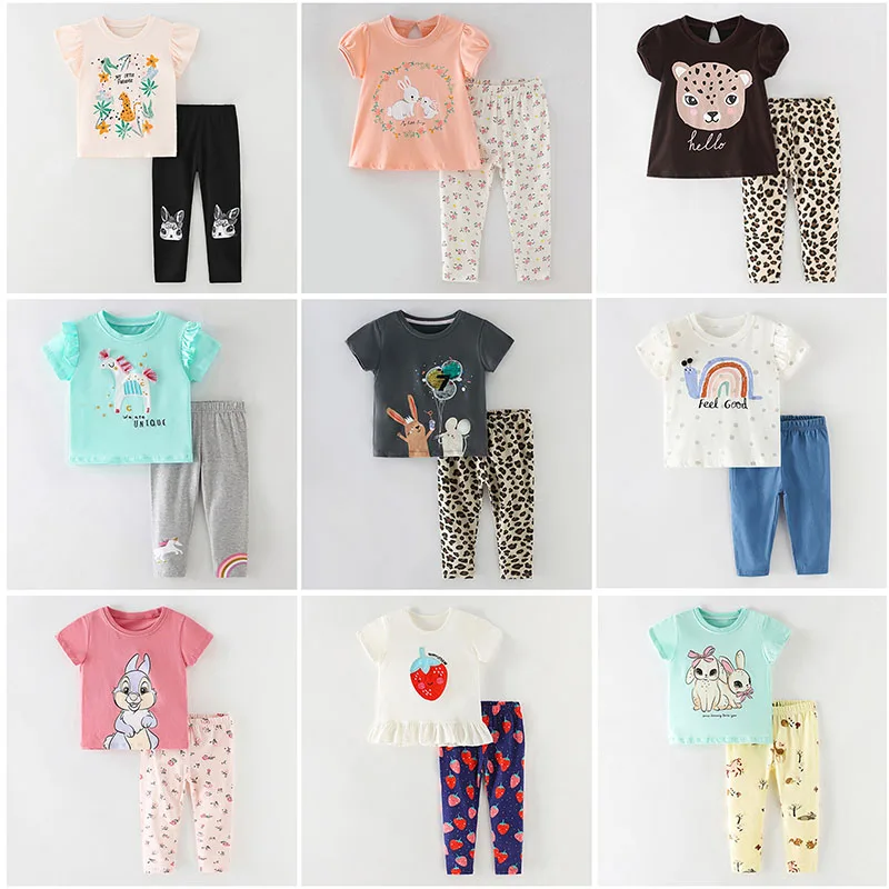 Женские комплекты одежды для маленьких девочек, брендовая качественная летняя футболка и леггинсы для девочек из 100% хлопка, брюки, комплект детской одежды из 2 предметов, наряд 2022