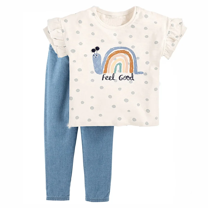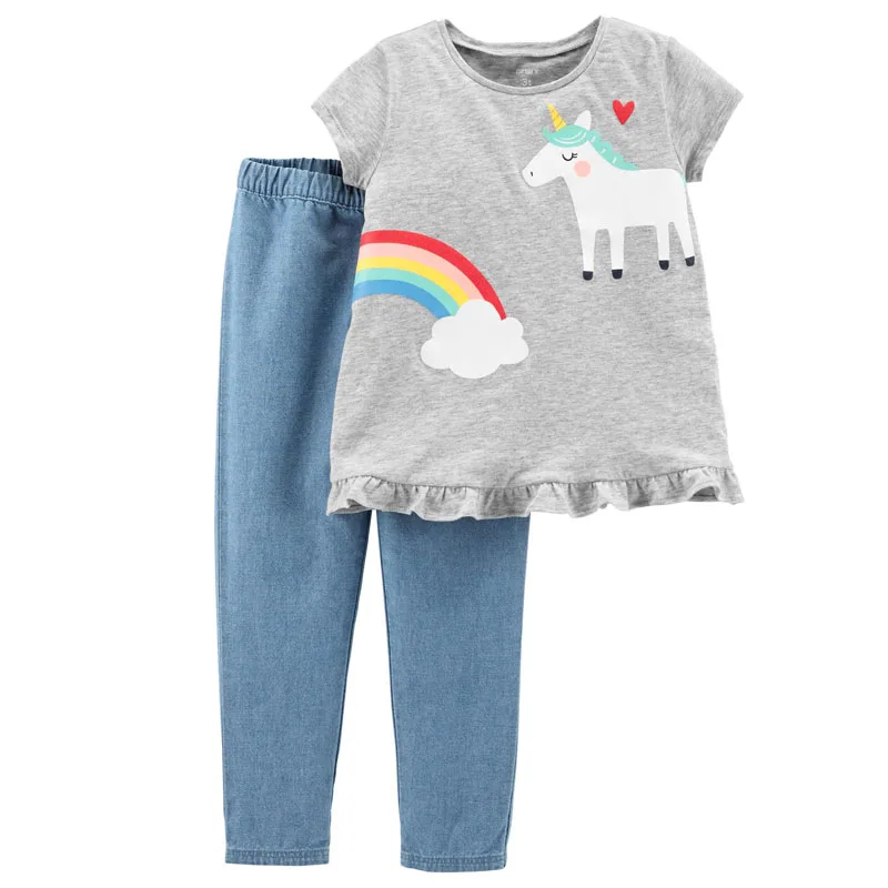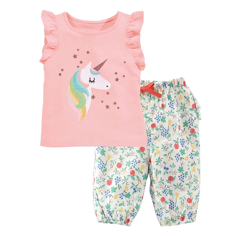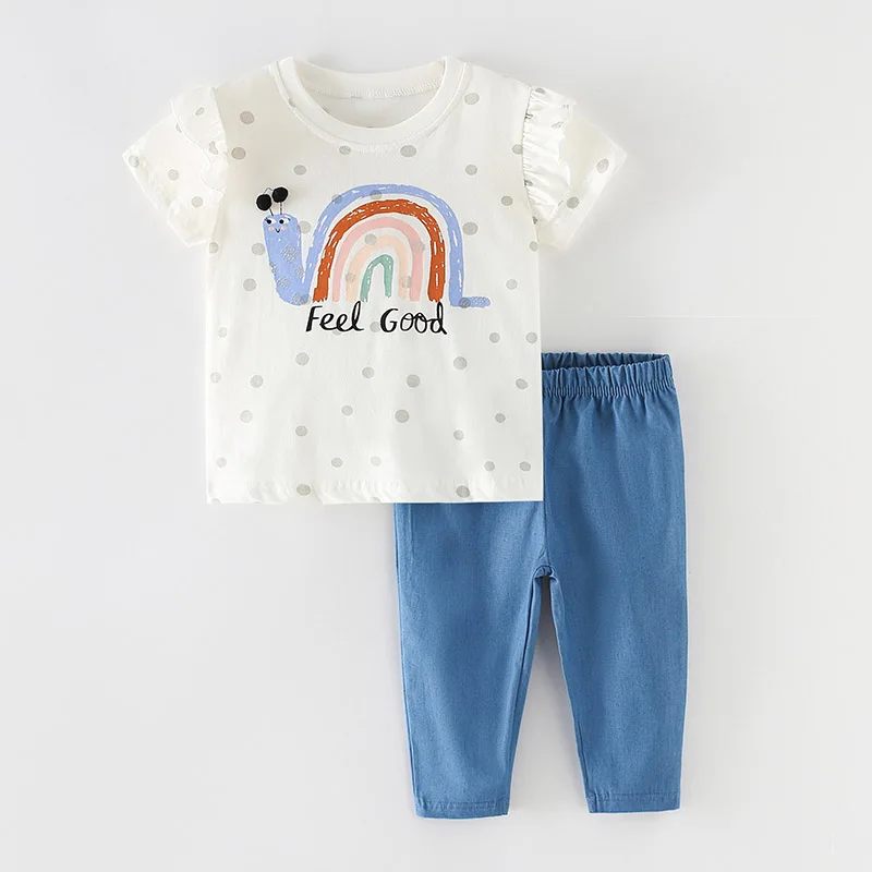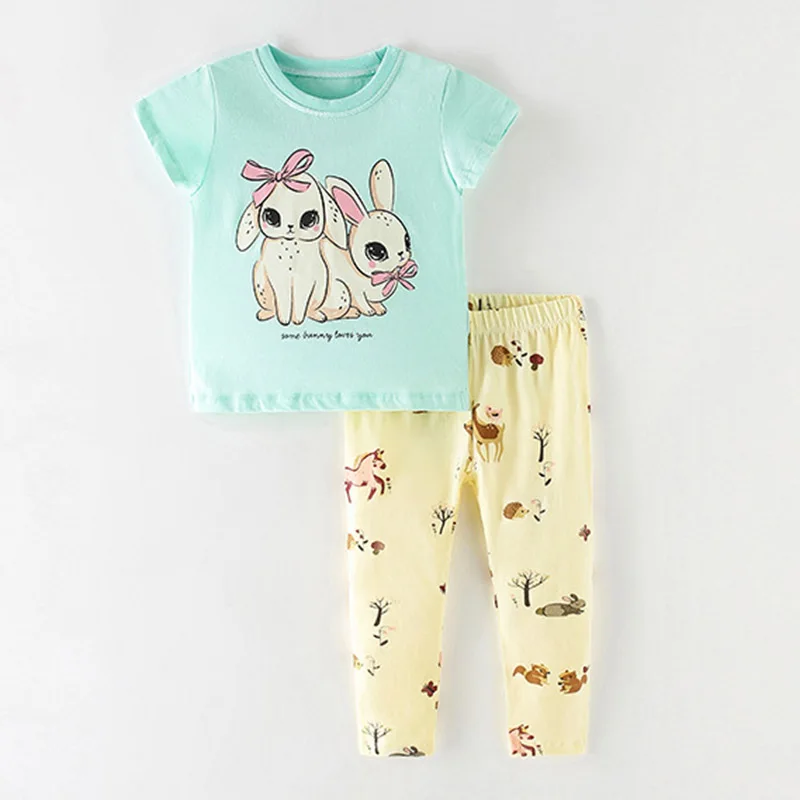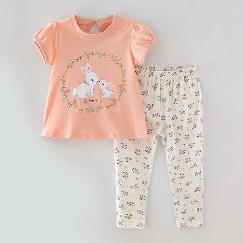 Женские комплекты одежды для маленьких девочек, брендовая качественная летняя футболка и леггинсы для девочек из 100% хлопка, брюки, комплект детской одежды из 2 предметов, наряд 2022