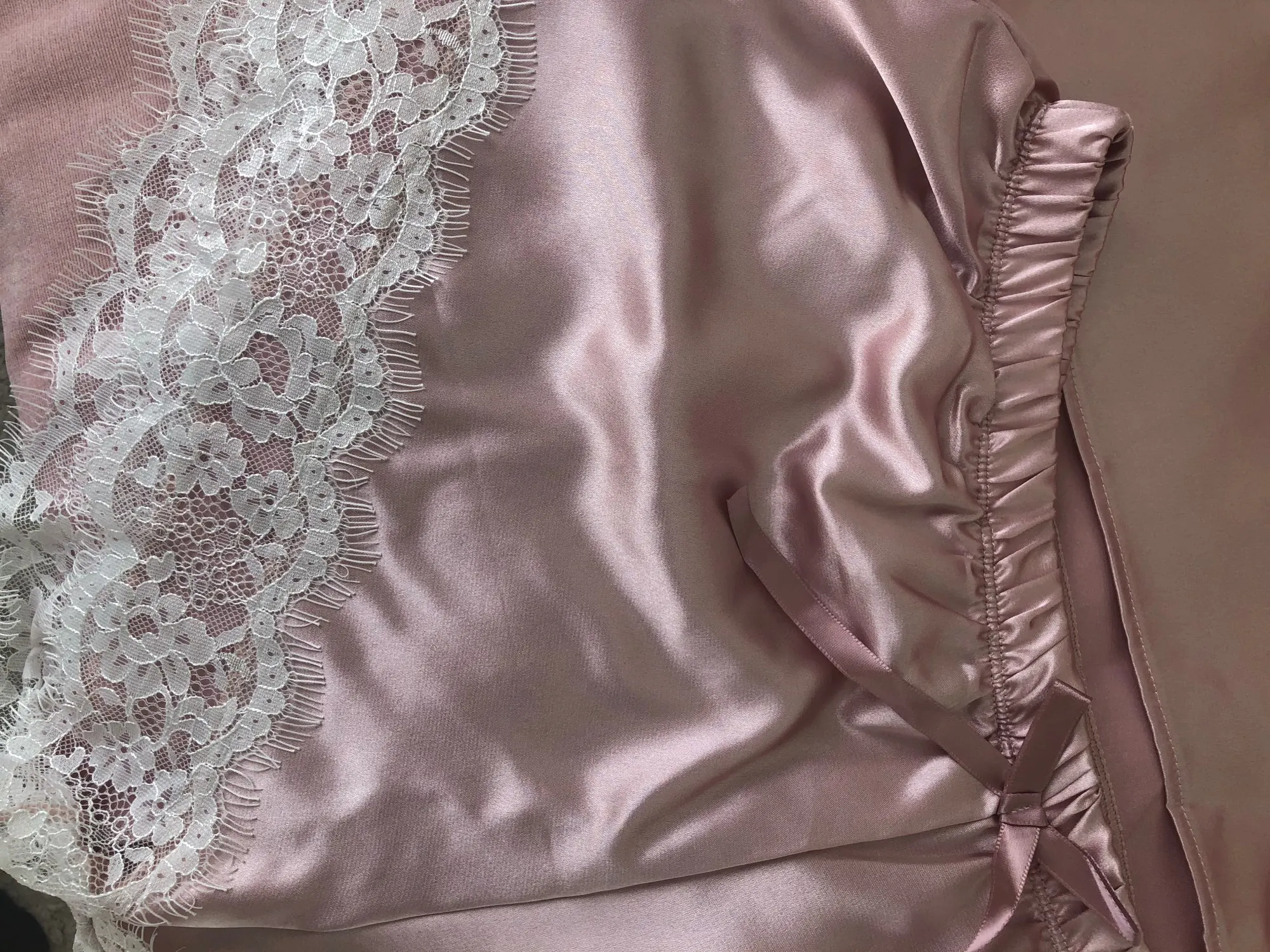 Как в описании! Заказывала у этого продавца несколько раз такие пижамы 5цветов! Все понравились! Кружево красивое! Размер XL на мой 46/48 подошёл отлично, не в обтяг, как и должно быть для пижамки! Немного электризуется, меня это не смущает. Рекомендую!