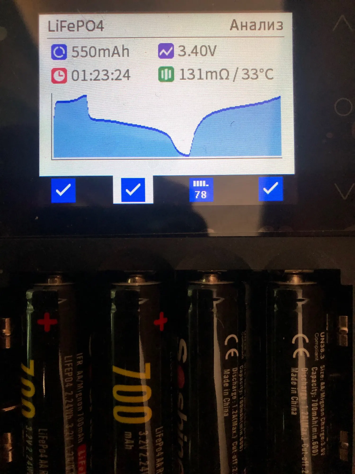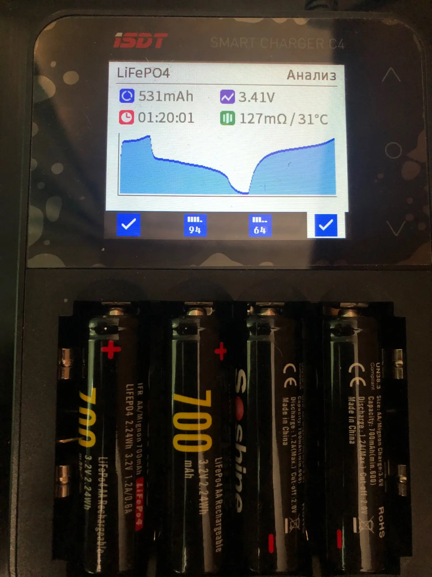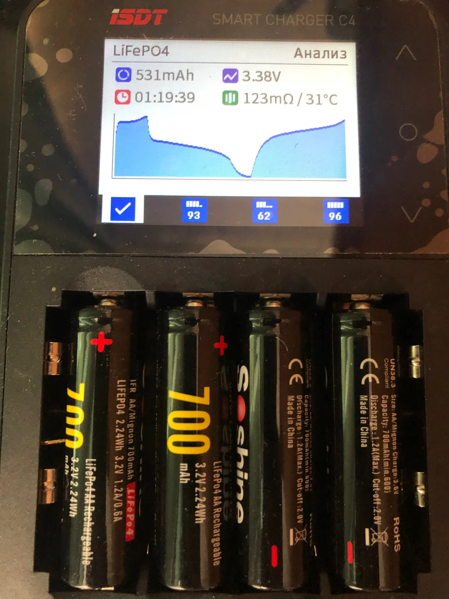 После первого заряда Литокала показала емкость от 620 до 650 на аккумуляторах. Думаю, отличные показатели. В комплекте бонусом были 2 пустышки.