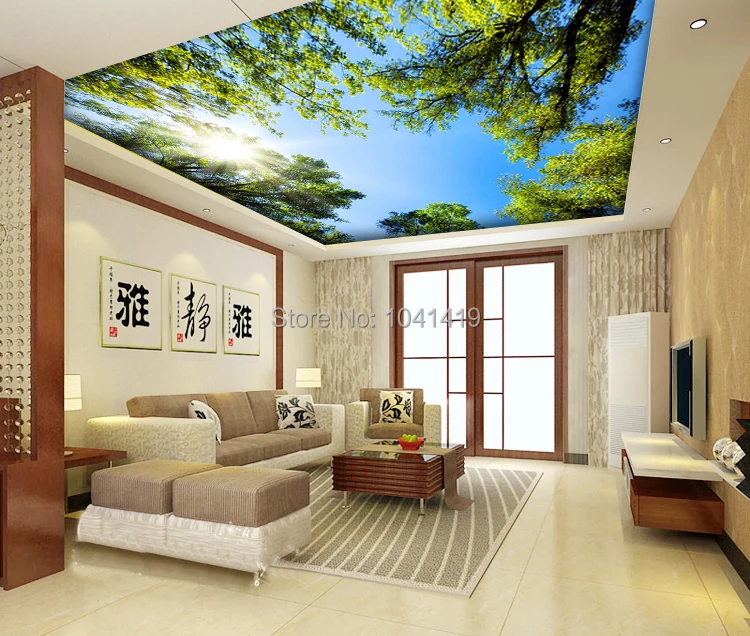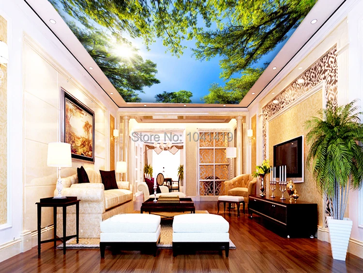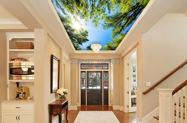 Пользовательские 3D настенные росписи обои Пейзаж Небо потолок Настенные обои солнечный зеленый лес Ресторан отеля гостиная фон