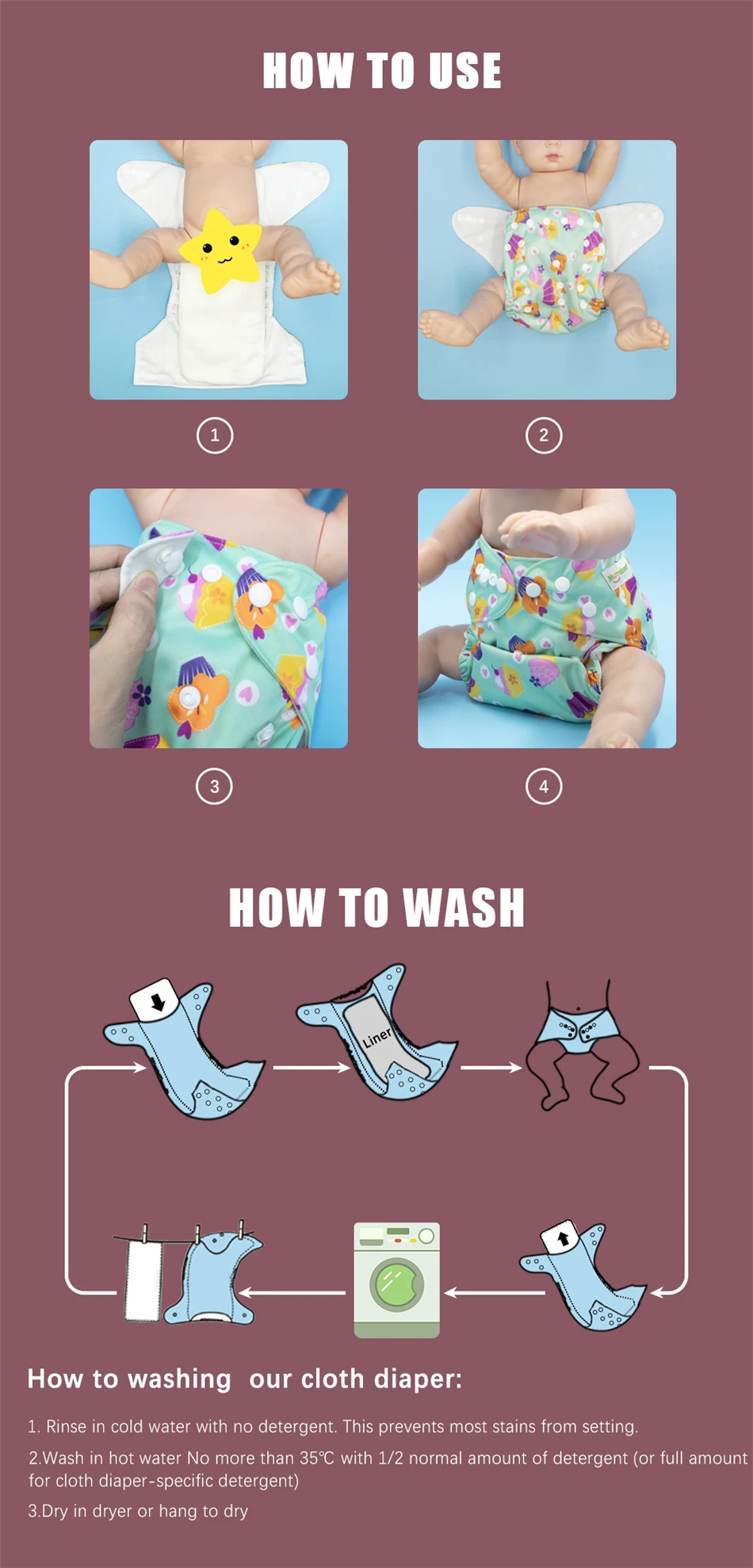 Многоразовый подгузник Mumsbest, 13 шт.упак., бамбуковый набор, экологичный бамбуковые памперсы бамбук, моющийся вкладыш, с принтом