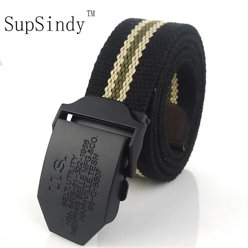 Мужской холщовый ремень SupSindy, черный армейский тактический ремень с пряжкой из сплава в стиле милитари, для джинсов