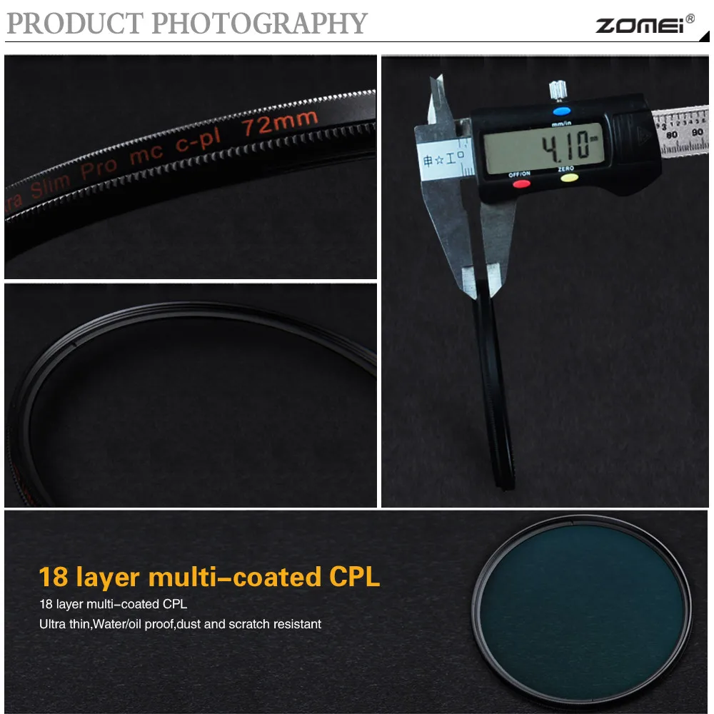 Оптический стеклянный фильтр ZOMEI HD, тонкий многослойный поляризатор, поляризационный фильтр для объектива 40,5495255586267727782 мм