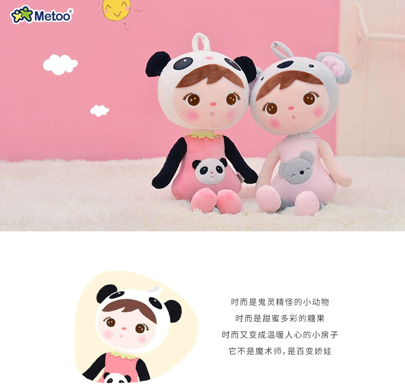 Кукла Metoo плюшевая для девочек, 45 см, милая панда, мягкая мультяшная мягкая игрушка-Зверюшка для детей, подарок на Рождество и день рождения