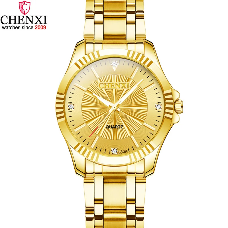 Женские наручные часы CHENXI, брендовые золотистые водонепроницаемые минималистичные часы в деловом стиле, повседневные кварцевые наручные часы золотого цвета