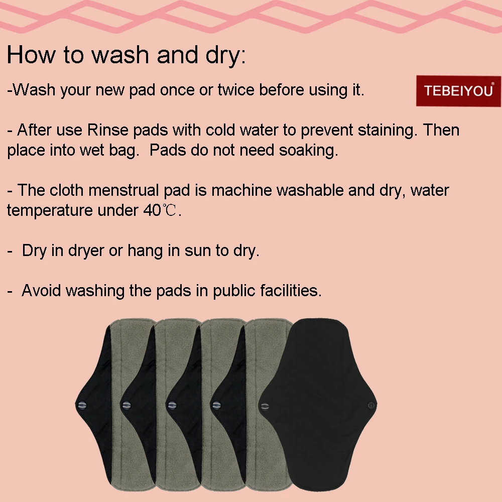 Довольно быстро. Право продукта, как он стоит: 5 многоразовых гигиенических полотенец с мешком. Я считаю, что это идеально по сравнению с белыми вариантами; Это позволит вам легко чистить при стирке, а именно. Не протекает и сидит хорошо!