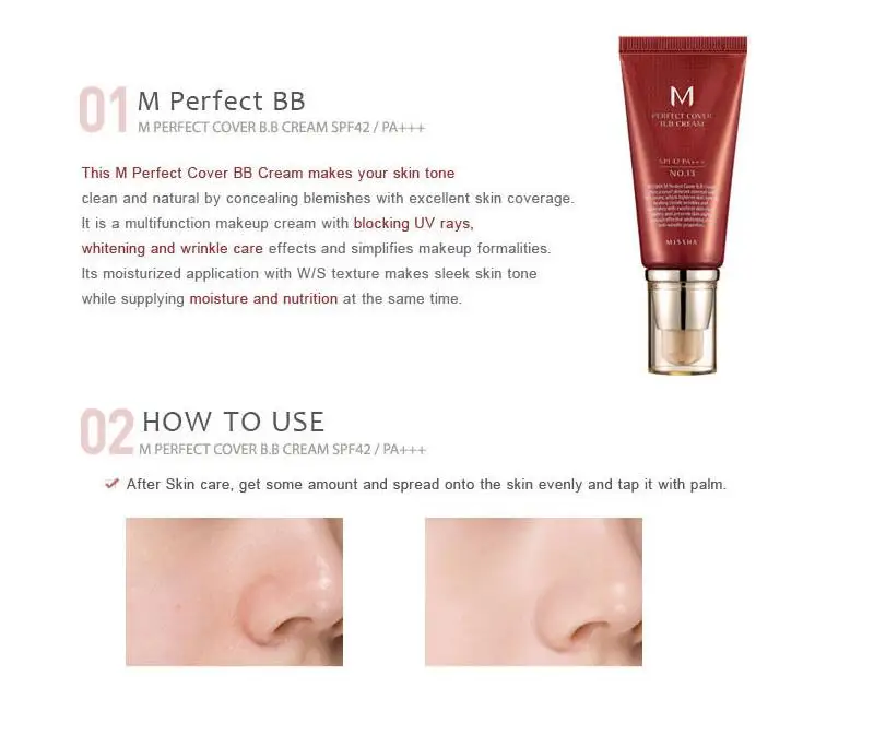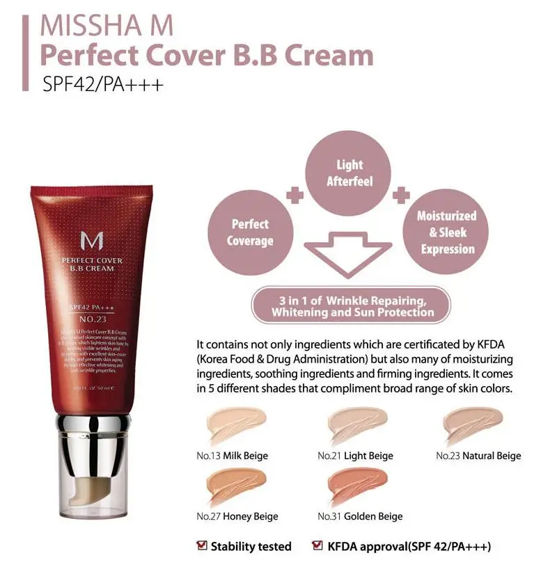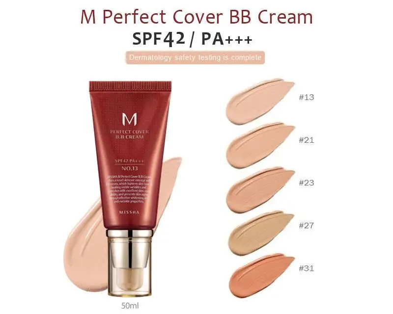BB крем MISSHA M Perfect Cover, 50 мл RX, Жидкая основа для макияжа, BB крем, база для лица, Праймер, нюдовый макияж, корейская косметика