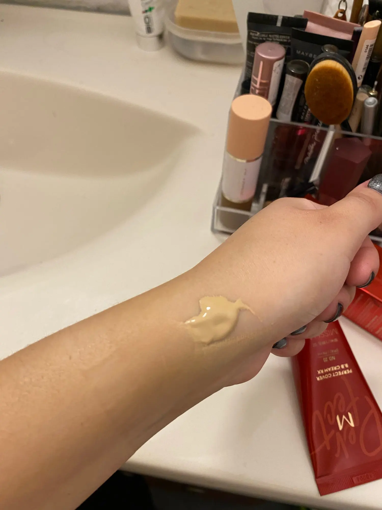 Заказ шёл 3,5 недели, очень довольна. Срок годности хороший (до 2024 года, не бойтесь берите). Продавец молодец. Тональный крем с очень приятной легкой текстурой, подойдёт для людей с акне, но перед ним нужно дополнительно замаскировать несовершенства лица кому надо.