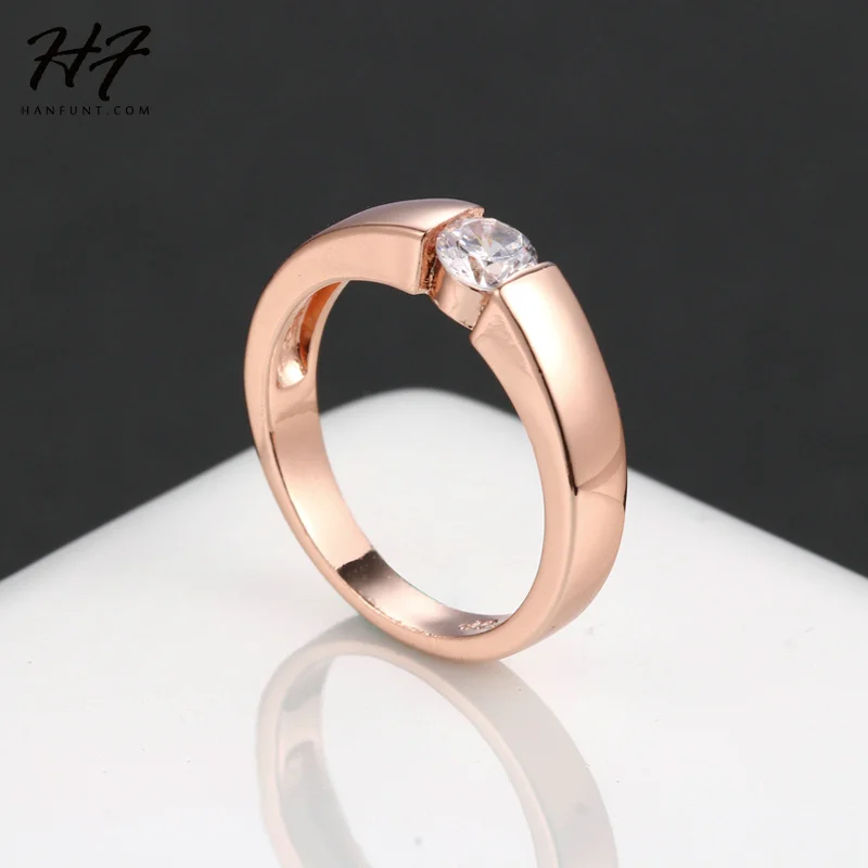 OL Стиль кубический цирконий Кристалл простое кольцо розовое золото...