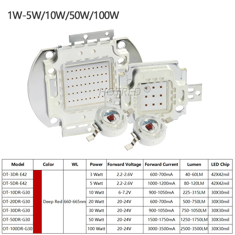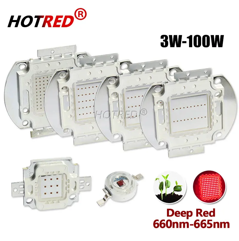 Светодиодный чип высокой мощности 660nm Deep Red светодиодный Grow светильник 660 nm 3W 5W 10W 20W 30W 50W 100W COB Emitter для растениеводства резервуар для аквариума