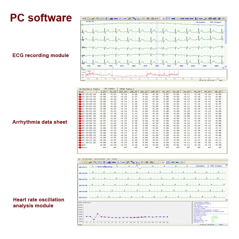 особенности программного обеспечения * быстрый и точный анализ системы. * с 3 приводит синхронного анализа, поиск QRS может быть более точно. * есть более чем 10 шаблонов как мерцательной преждевременной модуля биений, желудочковая преждевременной модуля биений, долго модуль интервал, трепетание предсердий модуль, фибрилляция предсердий модуль и т. д. и мультипликативные определяемые Пользователем шаблоны могли почти идентифицировать каждый вид патологических сигналов. * дополнительный основным каналом. * гибкой и точной " Фибрилляция Предсердий " анализ. * функция ходить анализ мог проанализировать все кардиостимуляторы. * многие pacine модули были добавлены. * любой период одного свинца или 3-проводной ЭКГ могут быть пересмотрены в любой момент с функция просмотра и анализа быстро сигнала. * типы анализа системы вариабельности ритма включают пять минут короткий ЭКГ и один час или 24-часовой длительного ЭКГ. * печать отчета целесообразно. * совершенная функция управления делами. * с функцией анализ сегмента ST и общей нагрузки расстройства сердечной мышцы, врач может судить заболевания или расстройства сердечной мышцы в целом. * " дыхание сна пауза анализ синдром ", врач мог распечатать асфиксию сна отчет анализа и диагностики. * " HRT " анализ, когда регулируемая функция естественно, это преходящее изменение будет представлена в виде HRT немедленно. * 15. " Т Волны Чередование " анализ является важным показателем на суде и предотвращения аритмии.
