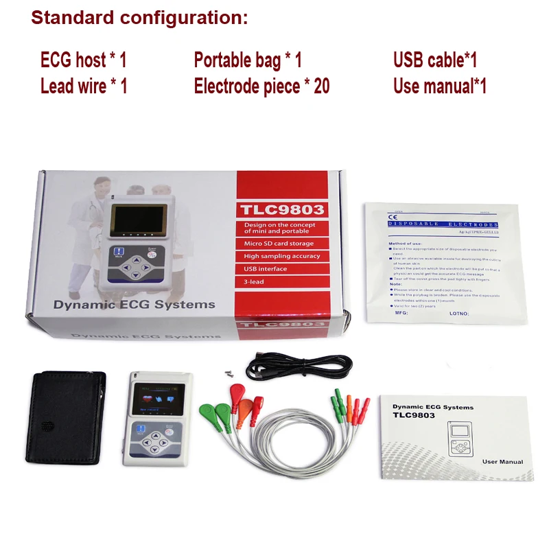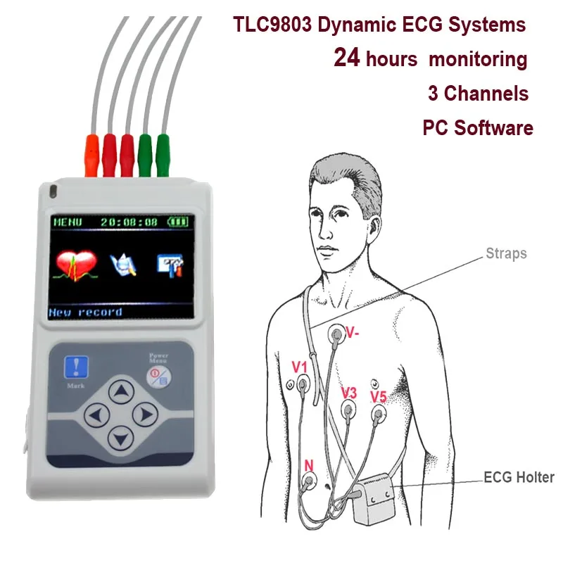 диагностический инструмент TLC9803 Портативный Кабель 24 Сердце Часа Мониторинга 3 Канала Записи Динамический ЭКГ Системы