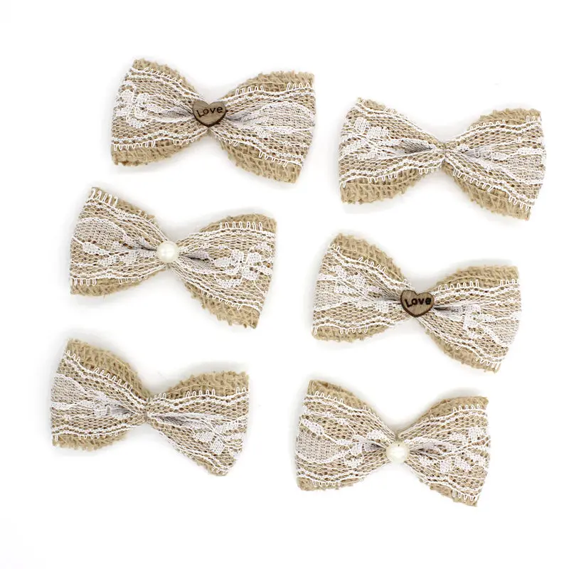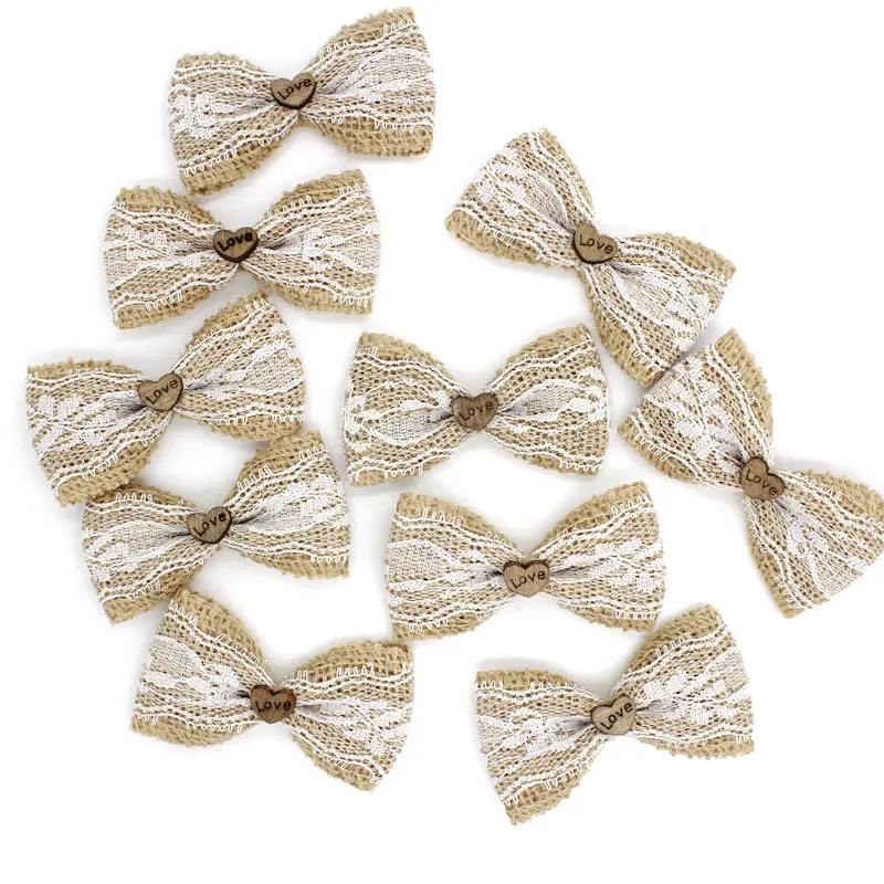 Винтажные банты из натуральной джутовой мешковины, из мешковины, с кружевом, ленты для свадебного украшения деревенский Свадебный бант, для рукоделия, 536840, 10 шт.