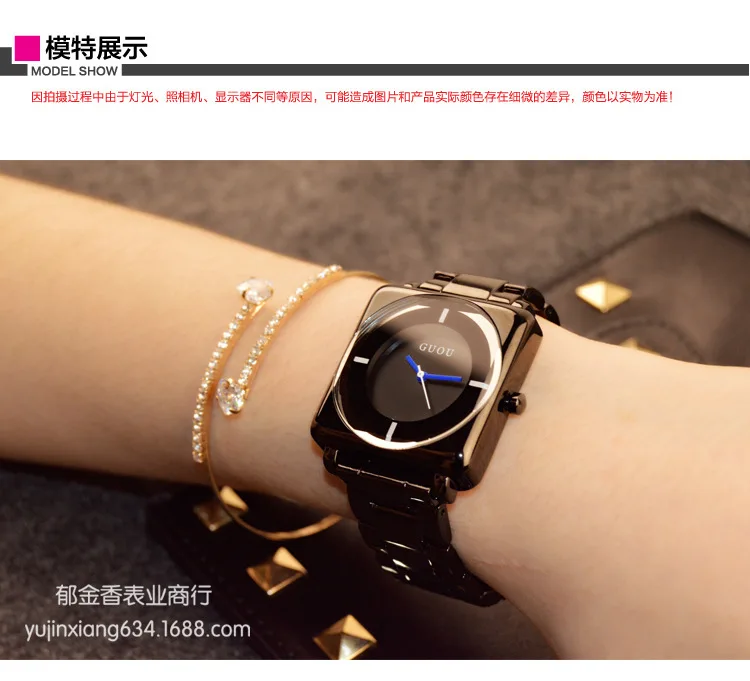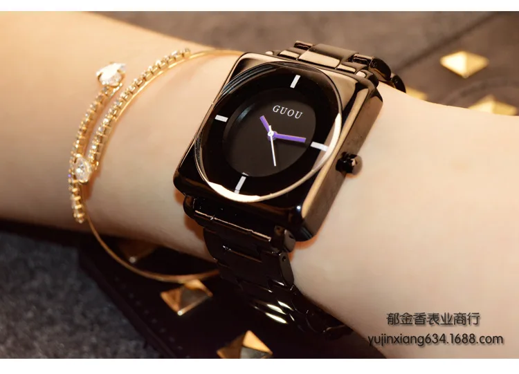 Наручные часы HK, кварцевые часы, высококачественные женские часы, розовое золото, черный ремешок из нержавеющей стали, Джокер, квадратные, простые, роскошные