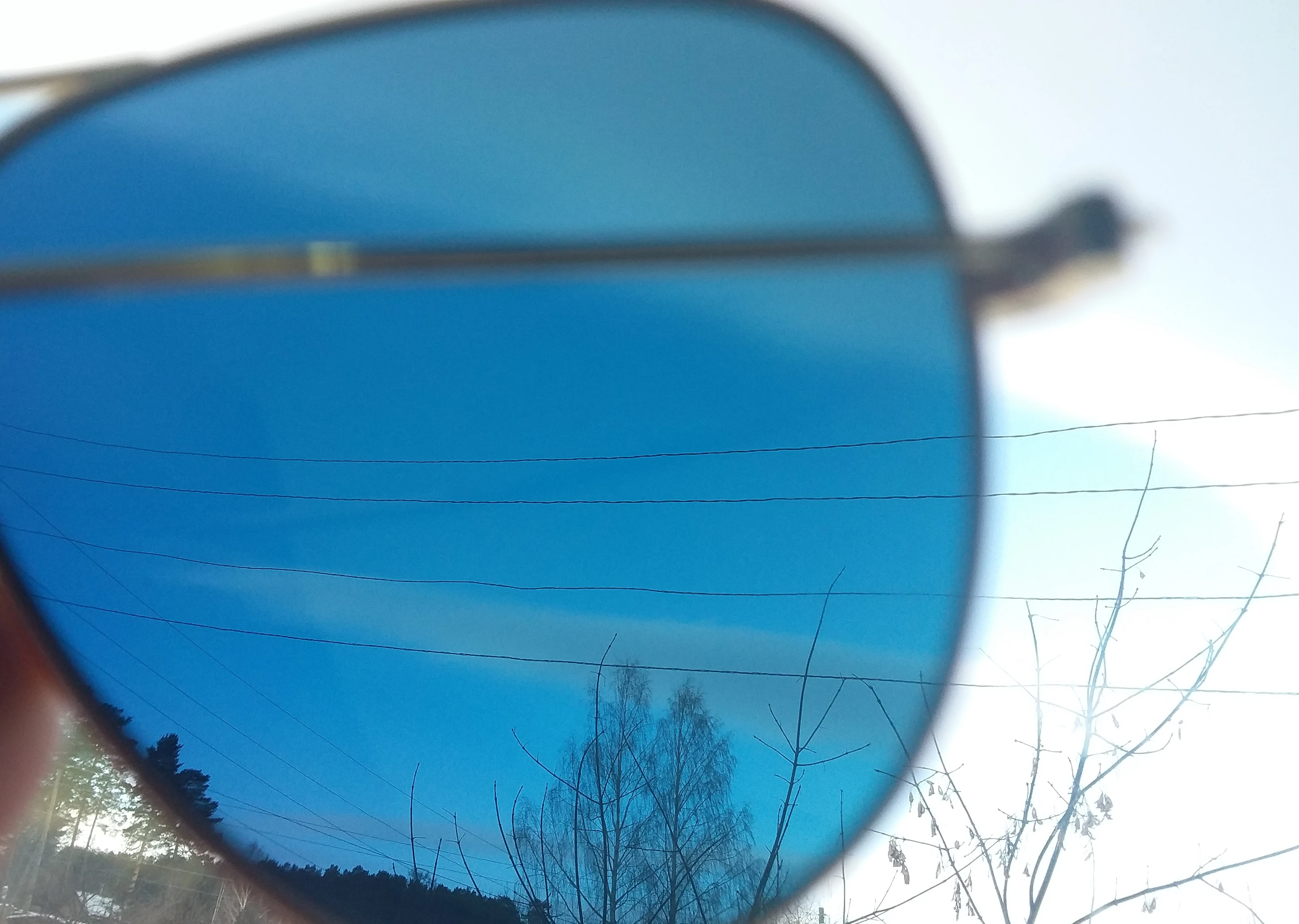 Очки очень хорошего качества. Заказываю у этого продавца уже 3-тьи по счету. Заказывая очки, вы должны обратить внимание на цвет оборотной стороны. У синих очков - оборотная сторона теплого желтого цвета, а у персиковых и желтых - холодная синяя (голубая). Покажу на своем примере. Поляризация отличная. Очки легкие, на переносицу не давят . Душки удобные. Лицевая сторона зеркальная(плотность непрозрачности-95%)