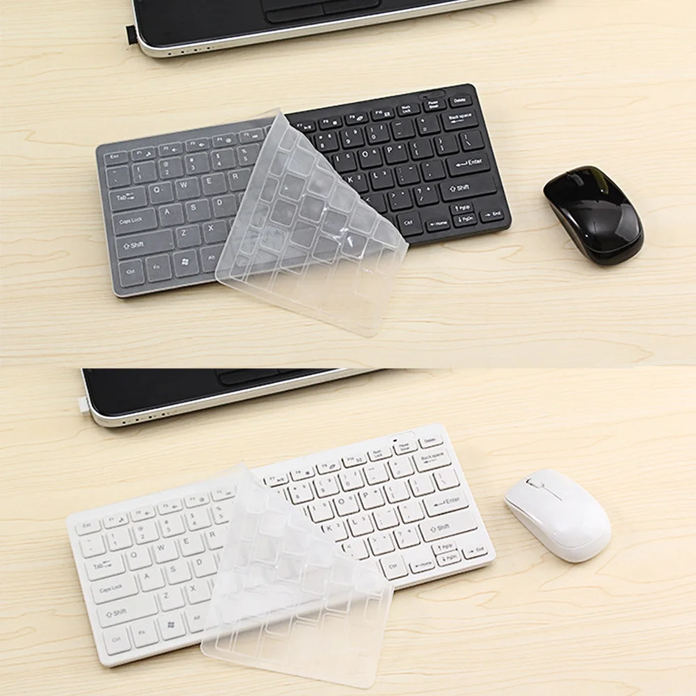 Посылка: 1 x клавиатура 1 х Мышь 1 usb-приемник 1 x пленка для клавиатуры