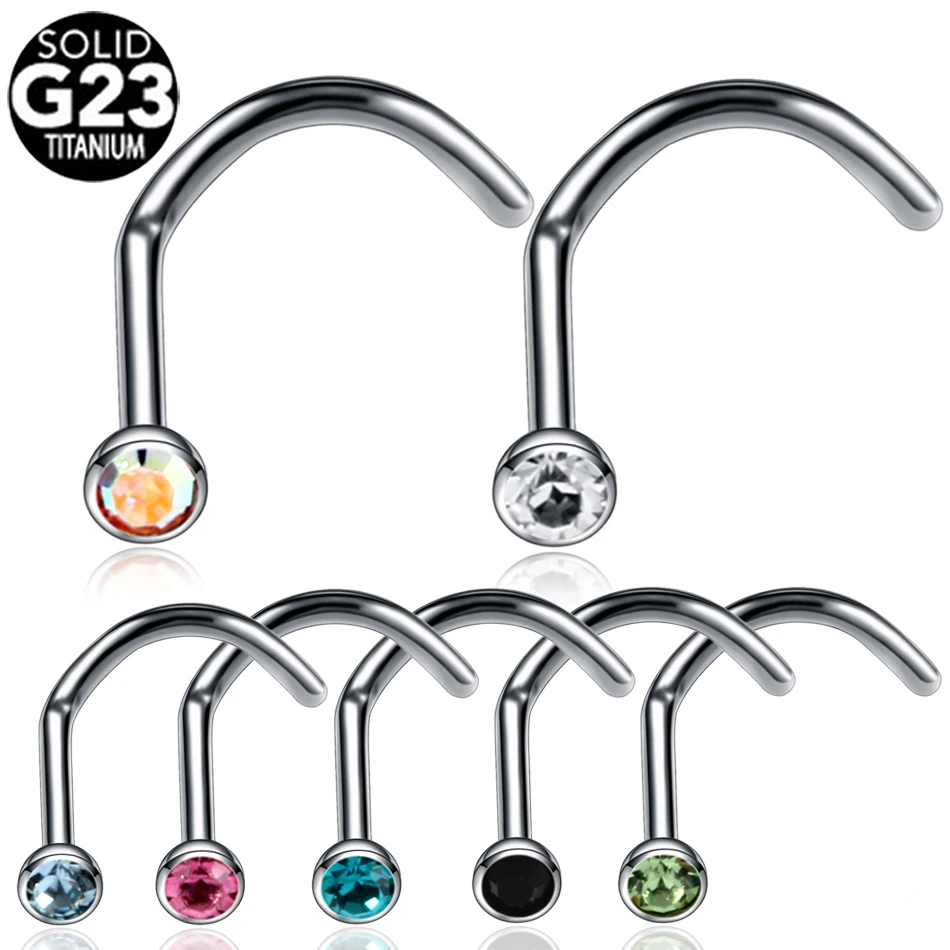 1 шт. ASTM-F136 титановое кольцо для пирсинга носа, шпилька, CZ винт, форма, ноздри, ювелирные изделия, 20 г и 18 г, серьги на Козелок, пирсинг тела