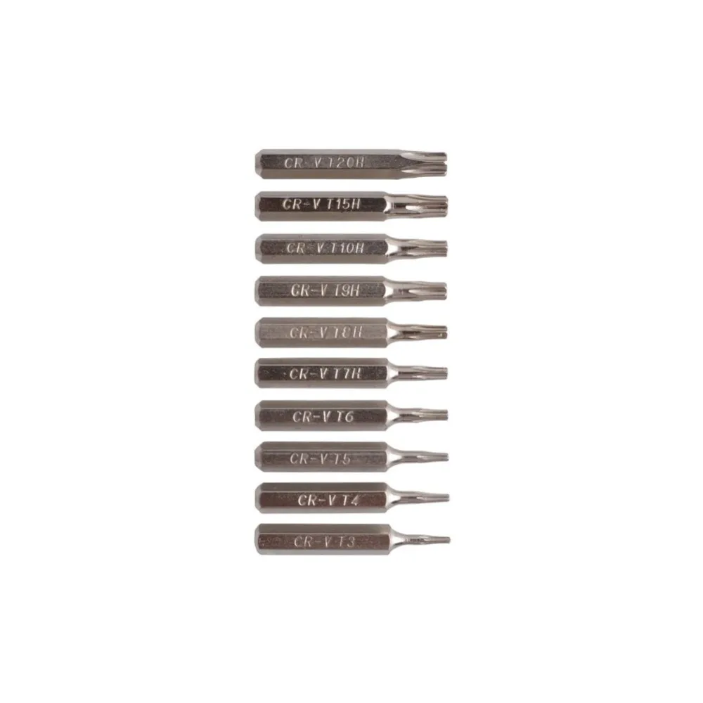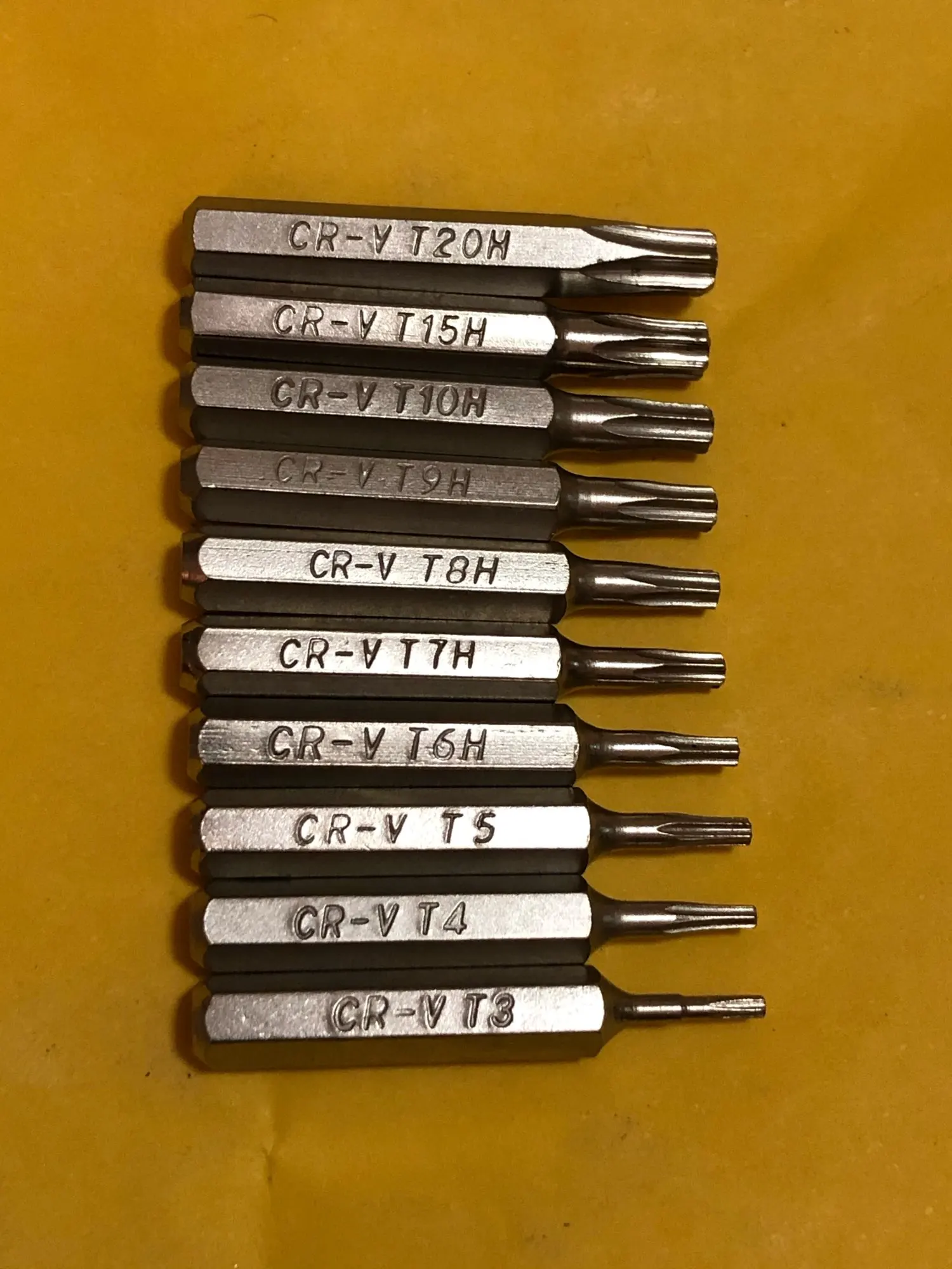 Набор отверток Torx CR-V, 10 шт., с центральным отверстием, включает T3,T4,T5,T6,T7,T8,T9,T10,T15,T20 (T6-T20 безопасный звездообразный ключ)