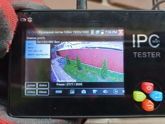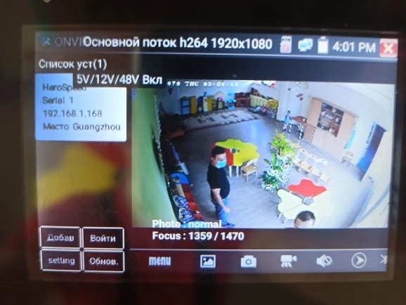 4 дюймов емкостный сенсорный экран4 дюйма Разрешение 800 × 480 IPS HD full viewПоддержка H.265 основной дисплей камеры видео, разрешение до 4KONVIF (поддержка работы PTZ), основная камера бренда IPC, настройка инструмента, отображение видео с помощью частных протоколов, почти Поддержка всех брендовых камер на рынкеCVBS Аналоговый Тест камеры: 1 канал CVBS аналоговый сигнал вход, поддержка PAL/NTSC формат адаптацииПроверка информации о фокусе: информация о фокусе камеры и проверка качества изображенияОбнаружение IP: полный сегмент сети IP сканирование для обнаружения ip-адресов камерыИнструмент HIKVISION SADP: Пакетная активация камеры HIKVISION, модификация пакетного IP, возможность изменения имени пользователя и пароляИнструмент для тестирования Dahua: Пакетная активация камеры Dahua, модификация пакетного IP, изменение перекрестного сетевого сегмента IP, изменение имени пользователя и пароляТест камеры Coax HD: поддержка разрешения HD TVI 8MP 3840X2156 15PПоддержка разрешения HD CVI 8MP 3840X2156 15PПоддержка HD AHD 5MP Разрешение 2560X1920 15PФото, видео и воспроизведение: Поддержка всех фото-и видеокамер, запись видео и хранение в формате H264Проверка качества кабеля TDR: проверка состояния подключения пары сетевого кабеля, длины, затухания, качества, сопротивления, параметров отклонения задержки и т. д.Поддержка контроля PTZ Pelco-D/P, Samsung, Panasonic и т. д. более 30 протоколовВыходная мощность DC12V: выходная мощность DC12V, максимальный ток 3A, обеспечивает временную мощность для камерИнструмент последовательного порта RS485: отправка или получение любых данных и шестигранных данныхЗарядное устройство: 12 В/2 а постоянного тока, 3-4 часа для полной зарядки аккумулятора