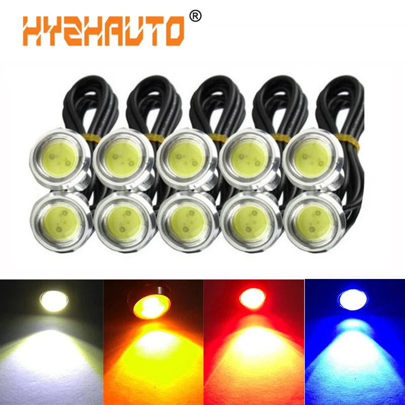 HYZHAUTP 10 шт. 23 мм Eagle Eyes светодиодный ные лампы Водонепроницаемый серебристый корпус Автомобильные противотуманные фары DRL дневные ходовые огни COB автомобильная лампа 12 В