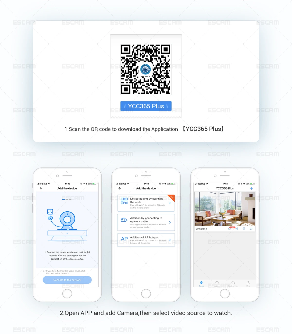 IP-камера YCC365 PLUS ESCAM QD109 HD 720P Беспроводная с поддержкой Wi-Fi